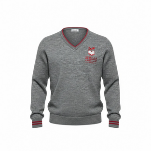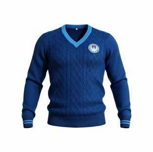 Suéter de acrilán trenzado con nombre en manga. Adaptable a diferentes colores y combinaciones.